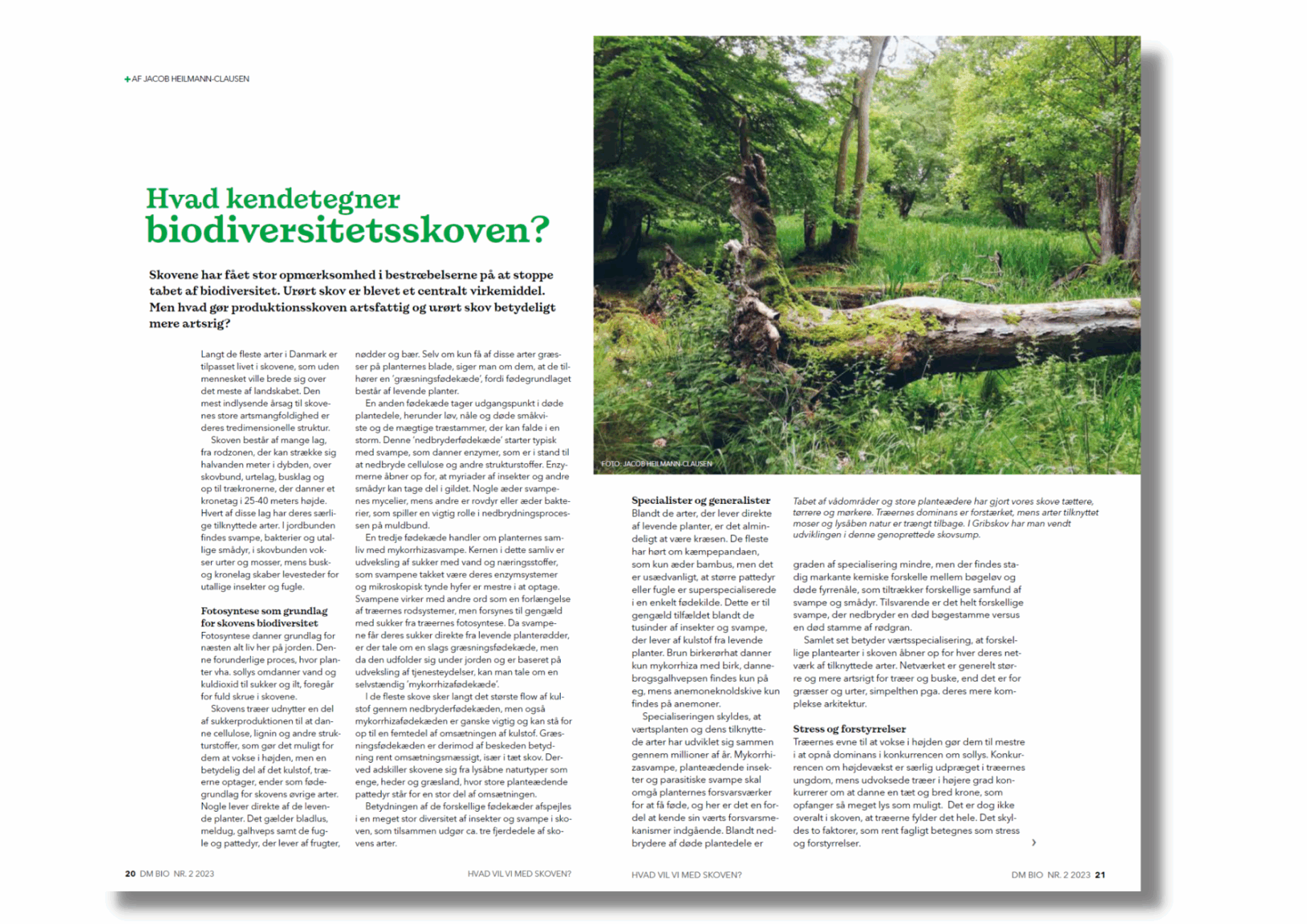 ARTIKELArtiklen handler om, hvad der gør urørt skov betydeligt mere artsrig end produktionsskov. Artiklen er bragt i DM Bio #2, maj 2023.