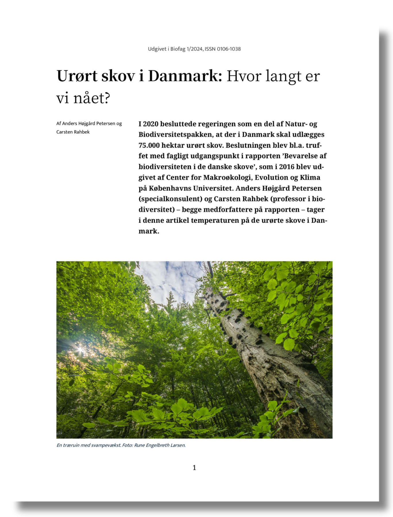 ARTIKLERI denne artikel kan du læse en status på udlægningen af urørt skov i Danmark. Artiklen er bragt i Biofag-temanummeret om skovenes biodiversitet, nr. 1/2024.